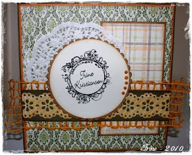 Vi er så heldige at Anne H har laget flere kort med våre stempler som vi kan dele med alle våre lesere. Dette kortet er laget med et av våre oldis stempler, og papir fra Maja Design. Legg merke til alle de lekre detaljene og bruken av blonder, tyll, og bånd.